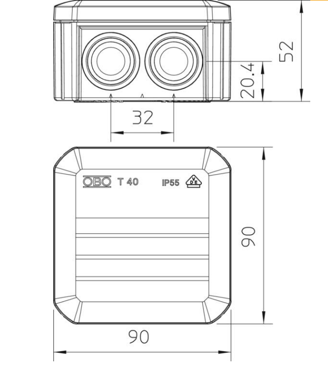Dimension 90x90x52 mm