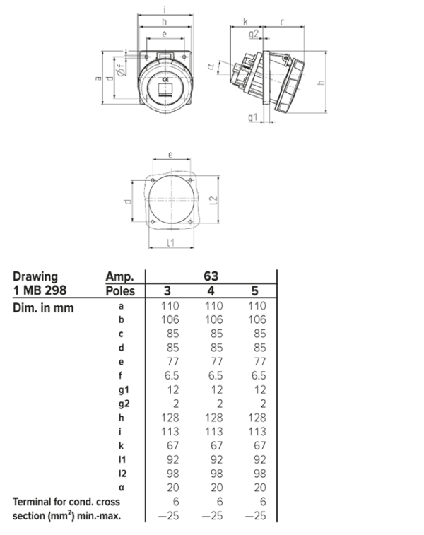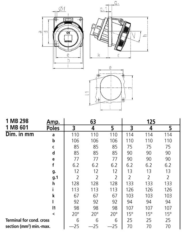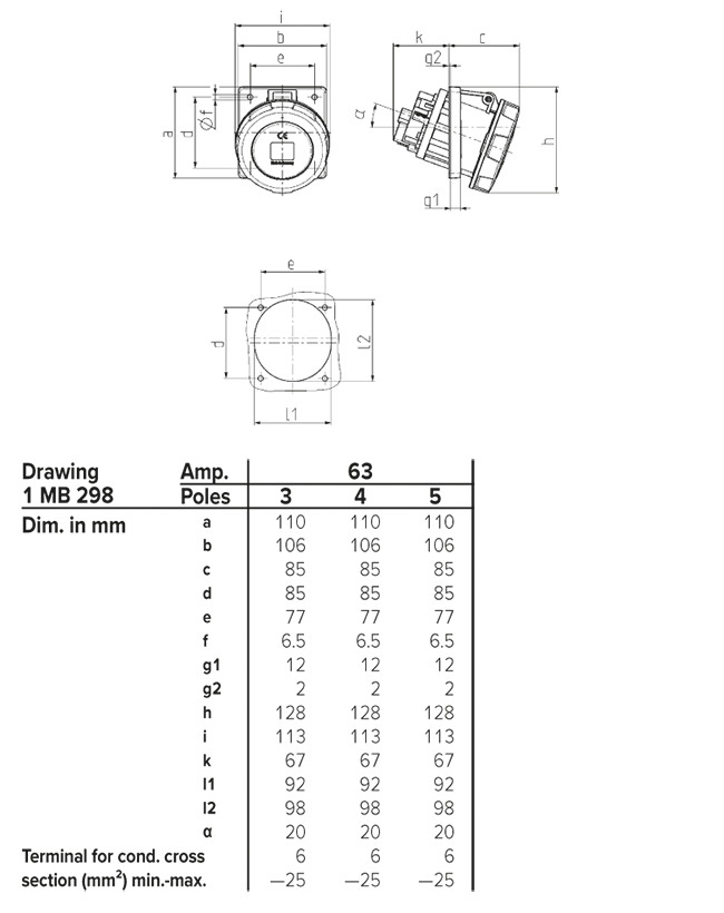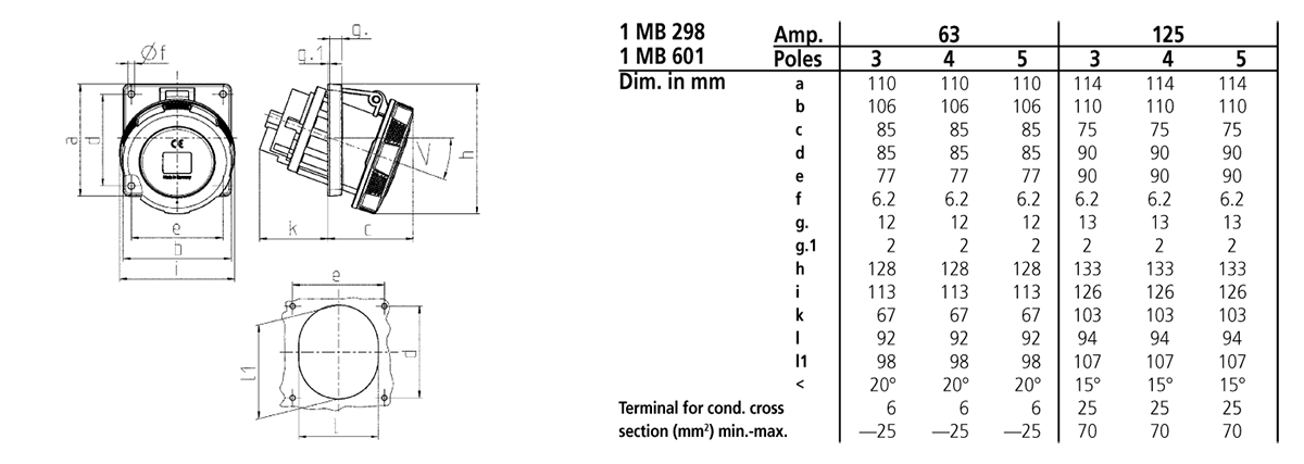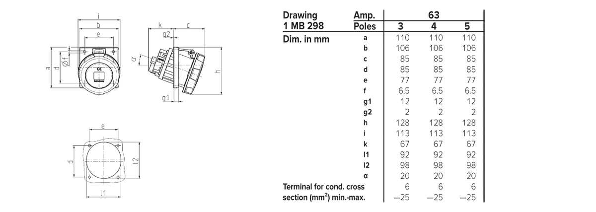 Trang chủ > Sản phẩm > Ổ cắm gắn tủ > Ổ cắm âm bảng MENNEKES – X-CONTACT – dạng nghiêng 20° – Drawing 1 MB 298/1 MB 601 – IP67