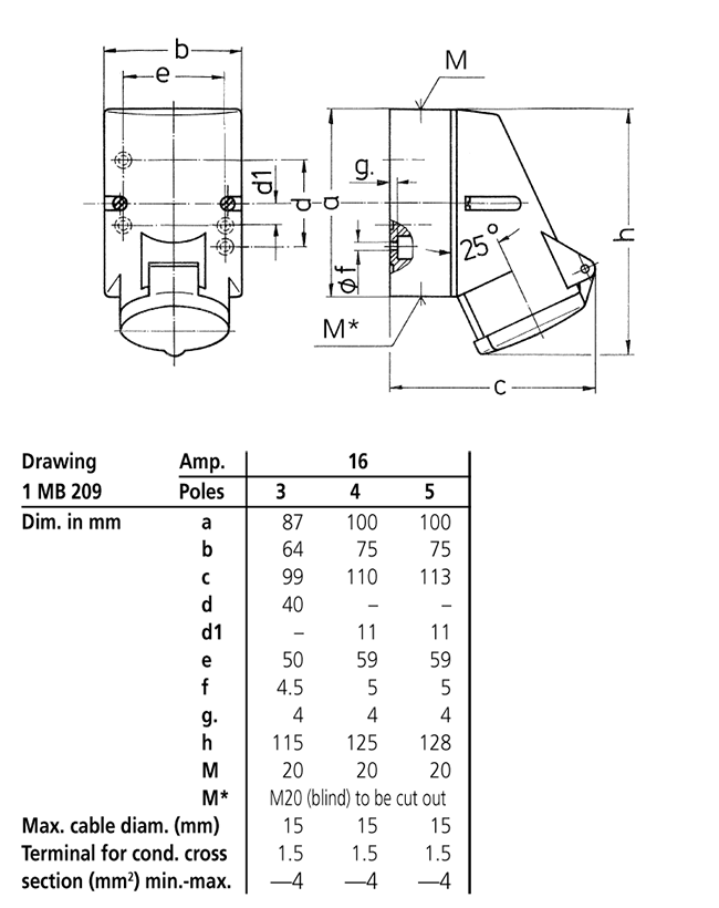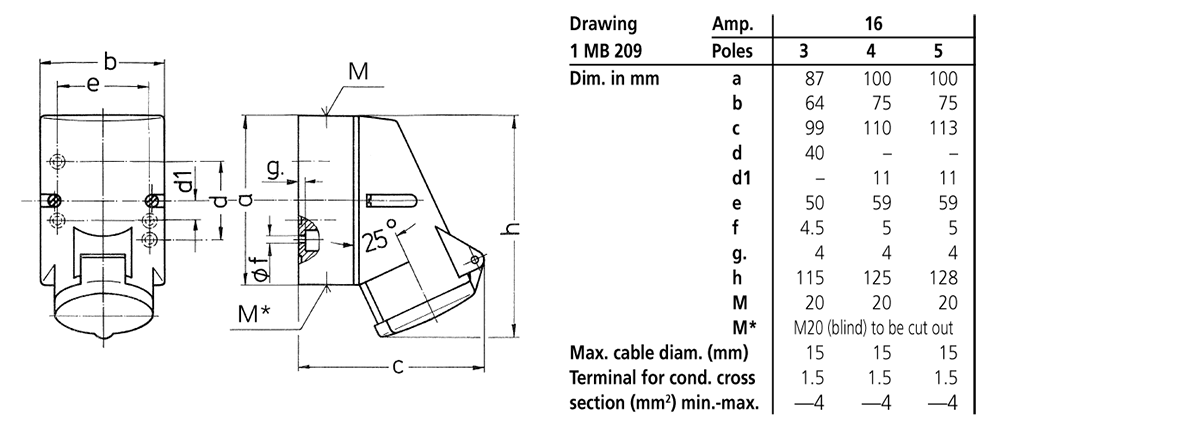 Trang chủ > Sản phẩm > Ổ cắm gắn tường > Ổ cắm gắn tường MENNEKES – TwinCONTACT – Drawing 1 MB 209 – IP44