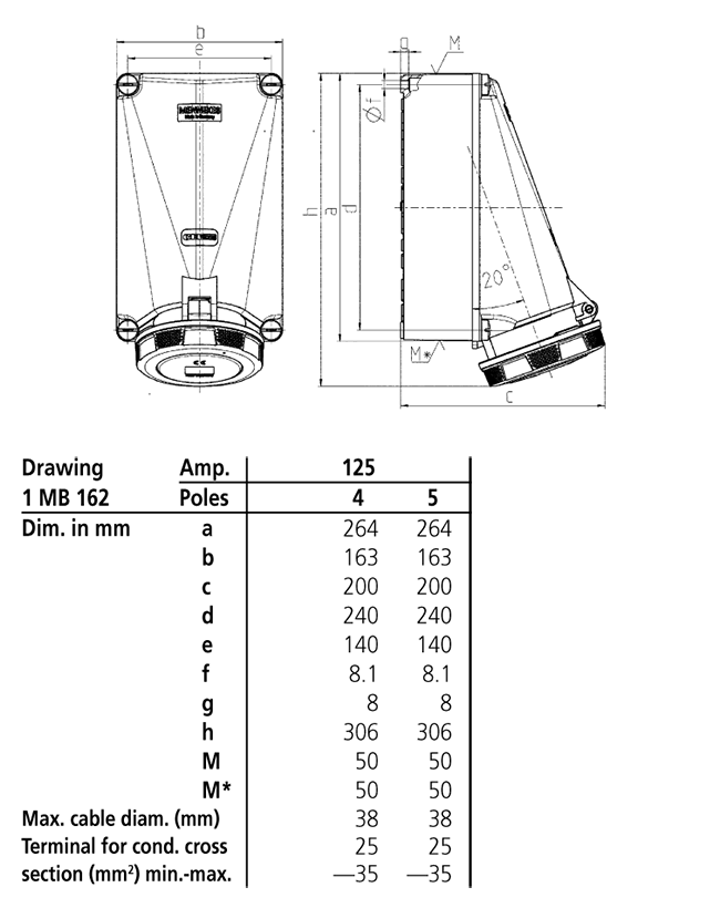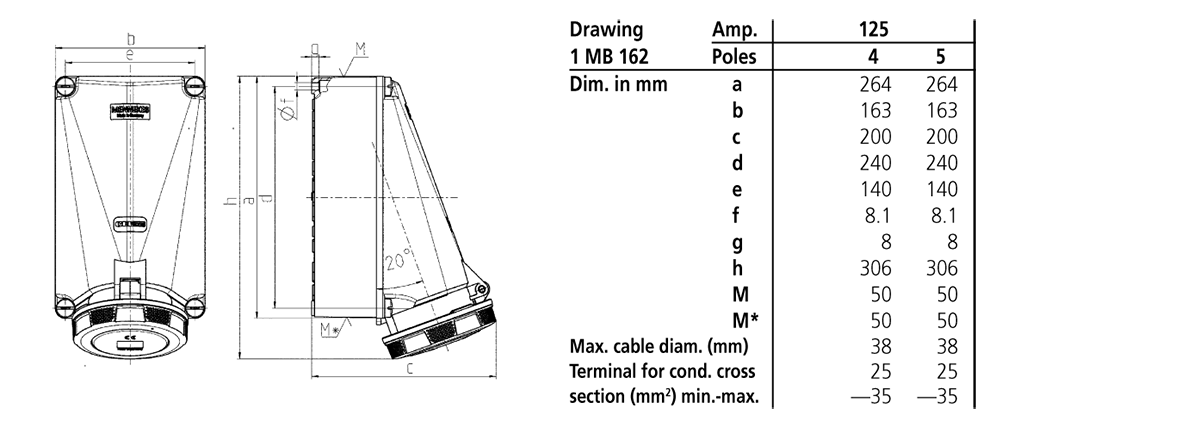 Trang chủ > Sản phẩm > Ổ cắm gắn tường > Ổ cắm gắn tường MENNEKES – X-CONTACT – Drawing 1 MB 162 – IP67