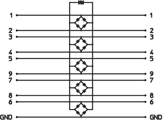 | Protection level, wire-wire at 1 kV/µs (C3) | <25 V |