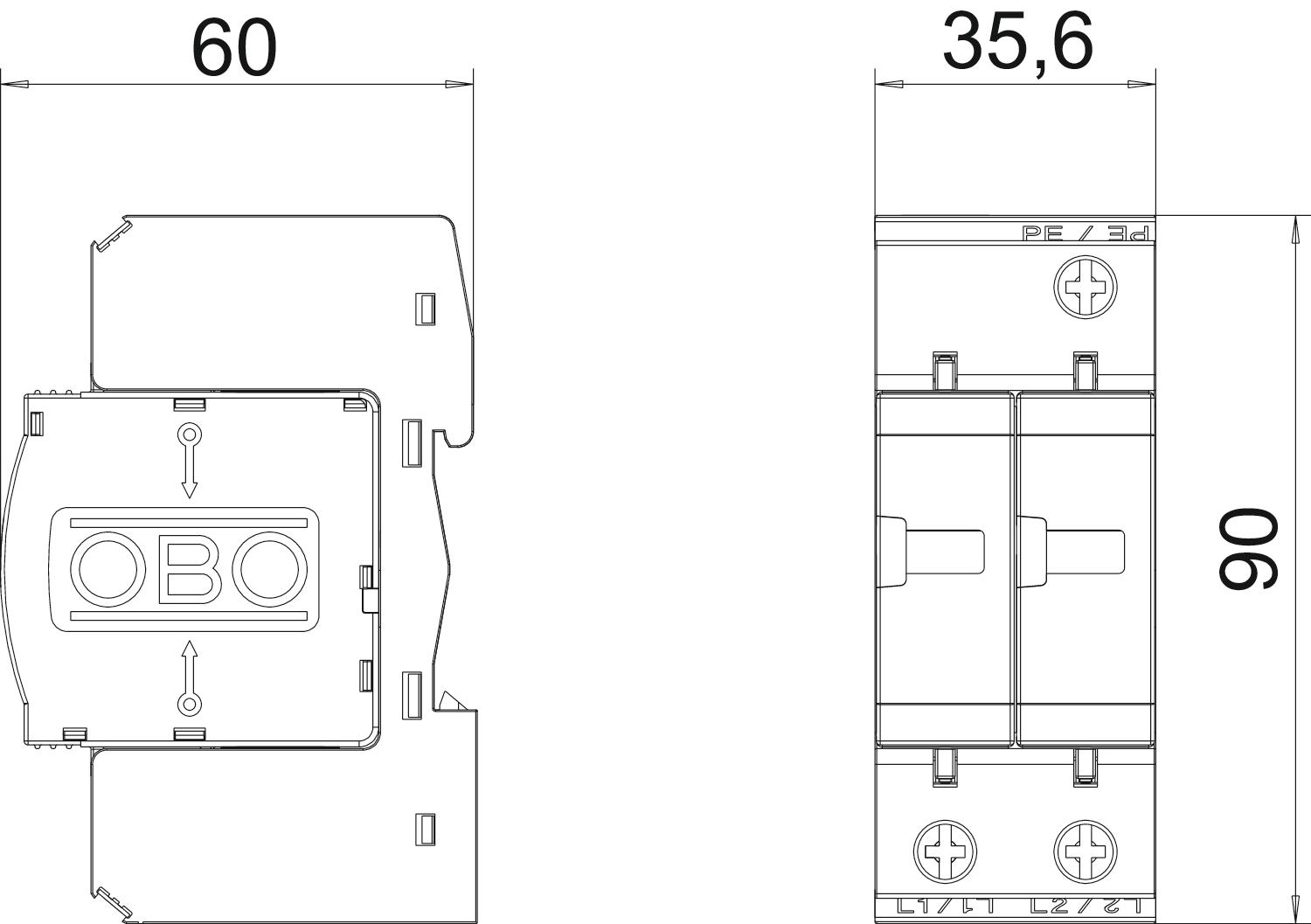 Khả năng thoát sét: Lên đến 40 kA (8/20) trên mỗi cực.