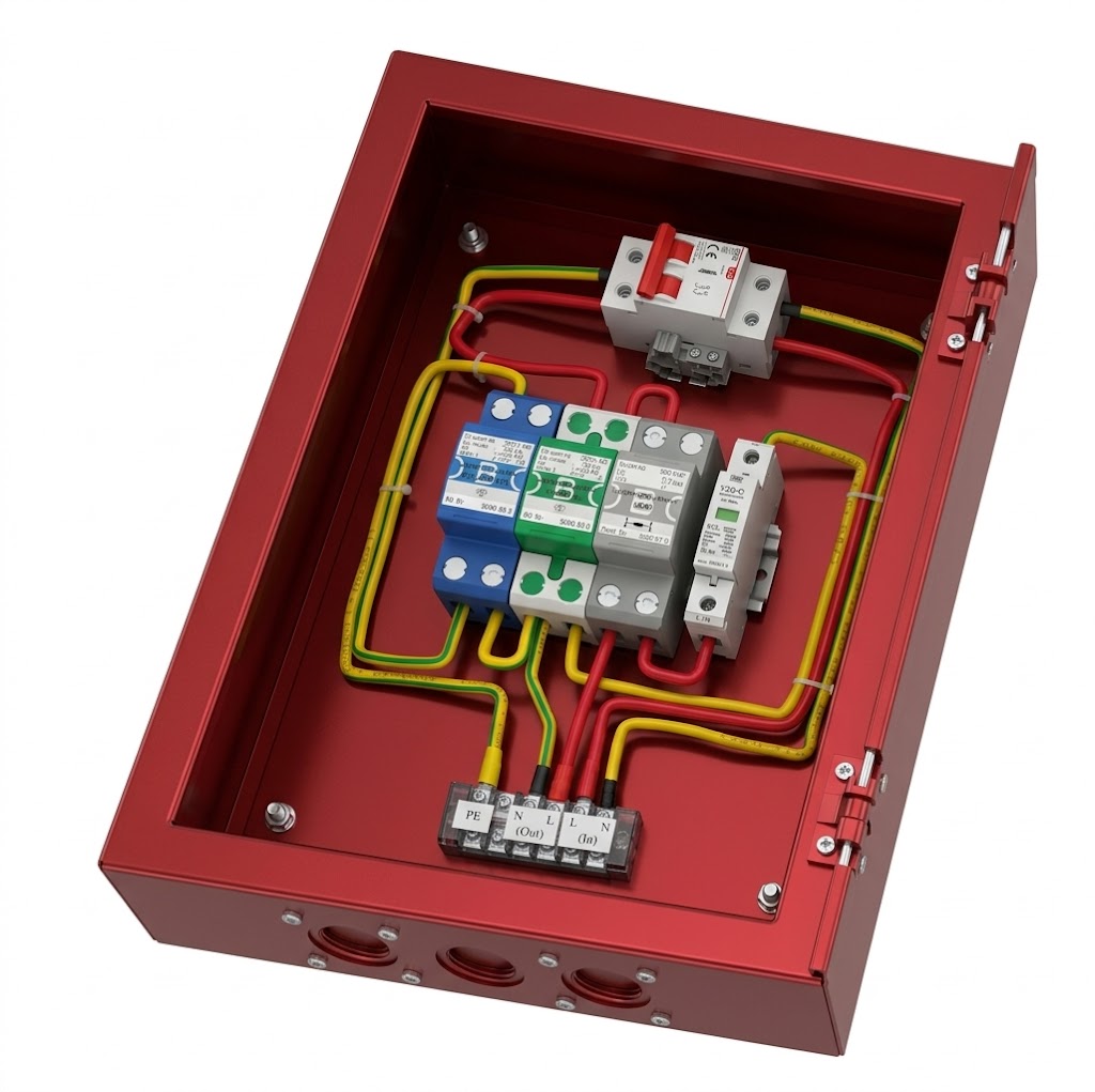Phân loại: Bộ thiết bị bảo vệ phối hợp chống sét sơ cấp và chống sét lan truyền (Type 1+2), tích hợp mạch lọc nhiễu.